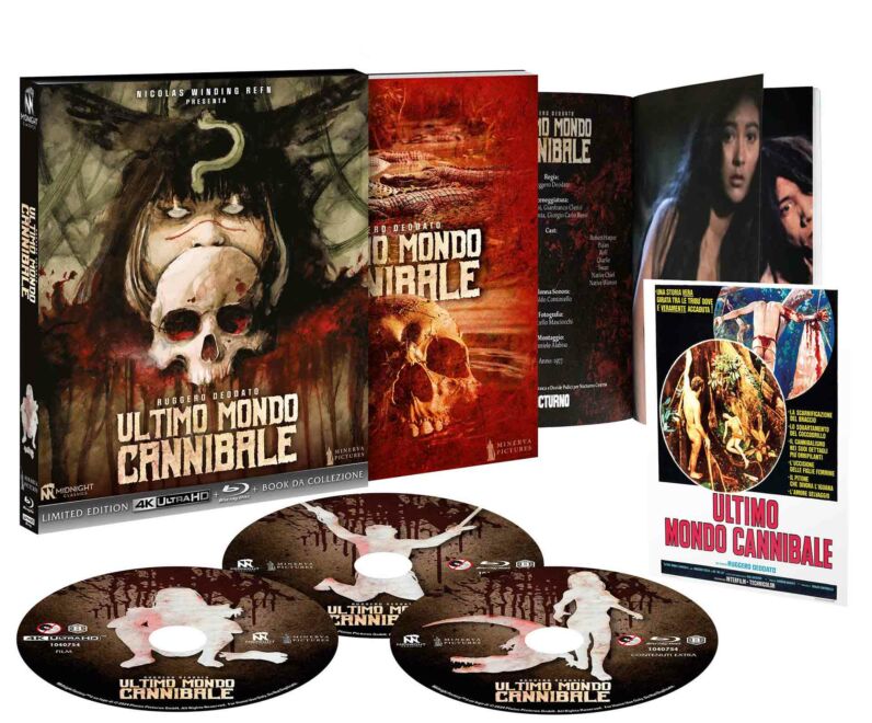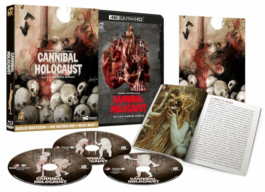 Lo sconvolgente film di Deodato, censurato e proibito in 23 paesi del mondo, torna in edizione Midnight Gold in versione integrale 4K Ultra HD + Blu-ray + Blu-ray Bonus con oltre 6 ore di contenuti extra, Booklet e Card da Collezione e pregiato artwork di copertina realizzato da Daniele Serra.